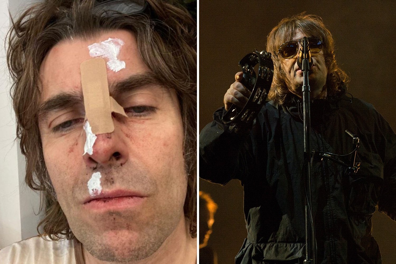 The former oasis singer shared a photo of his injured face on . The incident occurred after his set at a music festival. Former oasis frontman, liam gallagher, shocked fans this weekend by revealing he had been injured after falling out of a helicopter. Liam gallagher says he's on the mend after falling out of a helicopter. Liam gallagher shares a picture of his injuries after falling out of a helicopter.